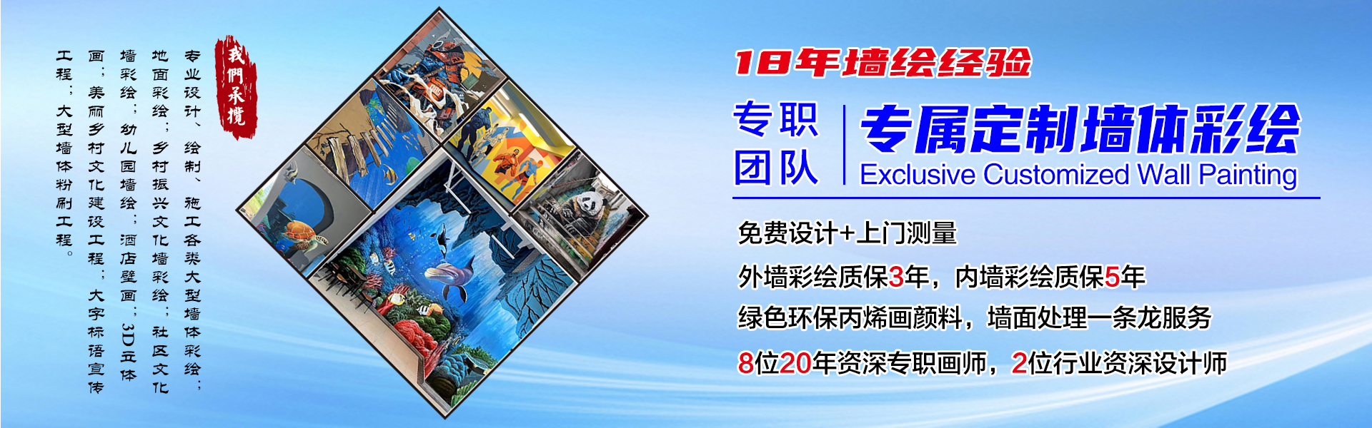 業(yè)務(wù)范圍涵蓋:社區(qū)文化建設(shè)彩繪;校園文化建設(shè)彩繪;各類文化墻彩繪;古建彩繪;家居彩繪;幼兒園墻繪;酒店壁畫;3D立體畫;文化街美化工程的建設(shè);美麗鄉(xiāng)村文化建設(shè)工程;房地產(chǎn)圍擋樓盤展示工程;大字標(biāo)語(yǔ)宣傳工程;浮雕雕塑、門樓牌樓、噴泉假山等工藝美術(shù)施工工程;各種大型墻體粉刷工程。